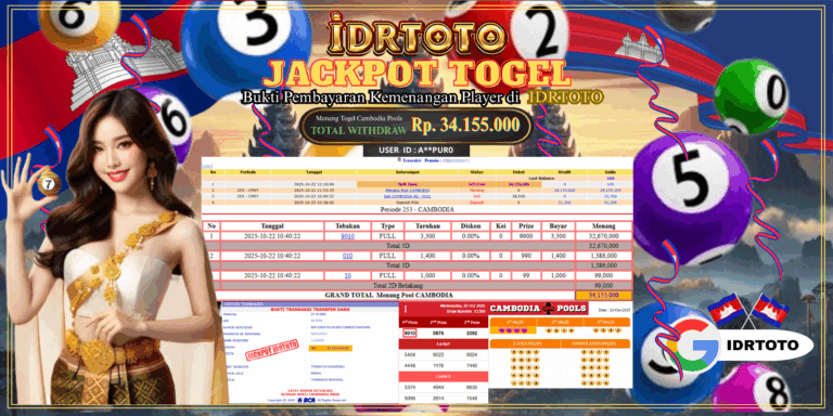 IDRTOTO JACKPOT PERMAINAN TOGEL CAMBODIA POOLS Rp.34.500.000 – LUNAS