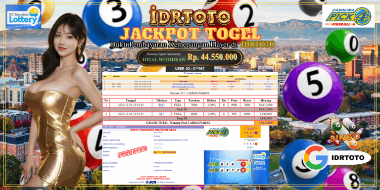IDRTOTO JACKPOT PERMAINAN TOGEL CAROLINADAY Rp.44.550.000 – LUNAS