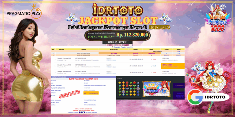 IDRTOTO JACKPOT PERMAINAN SLOT Starlight Princess 1000 Rp.112.820.000 – LUNAS