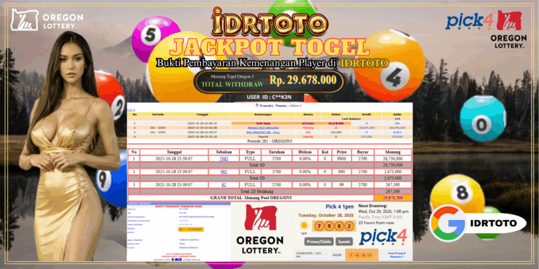 IDRTOTO JACKPOT PERMAINAN TOGEL OREGON 3 Rp.29.678.000 – LUNAS