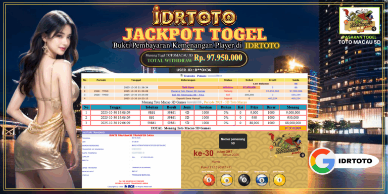 IDRTOTO JACKPOT PERMAINAN TOGEL TOTOMACAU 5D Rp.97.950.000 – LUNAS