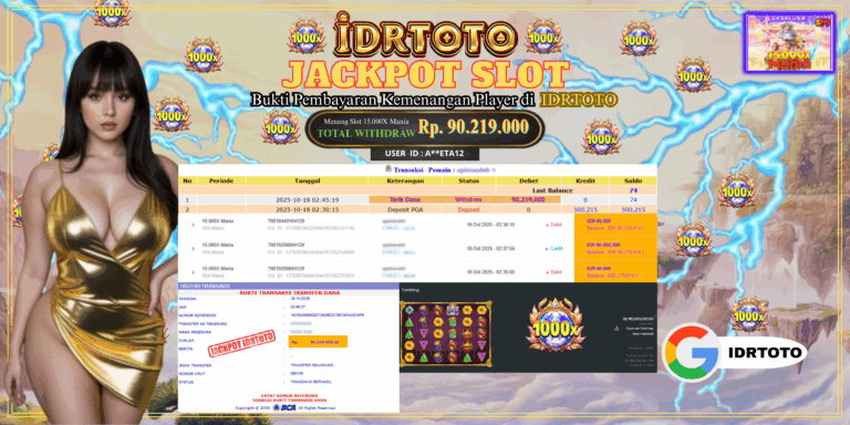 IDRTOTO JACKPOT PERMAINAN SLOT 15.000X Mania Rp.90.219.000 – LUNAS