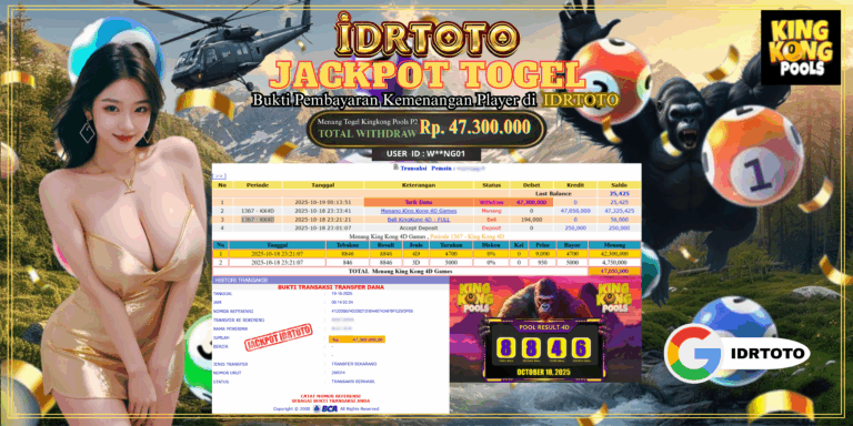 IDRTOTO JACKPOT PERMAINAN TOGEL KINGKONG POOLS P2 Rp.47.300.000 – LUNAS