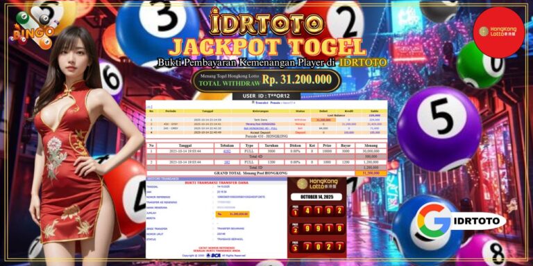 IDRTOTO JACKPOT PERMAINAN TOGEL HONGKONG LOTTO Rp.31.200.000 – LUNAS