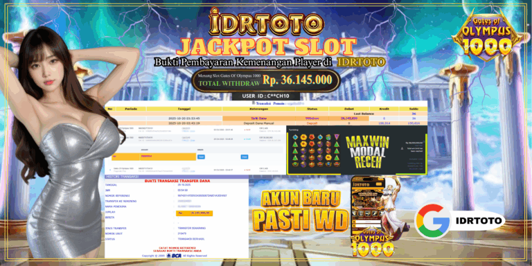 IDRTOTO JACKPOT SLOT GATES OF OLYMPUS 1000 Rp.36.000.000- LUNAS