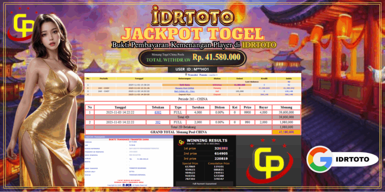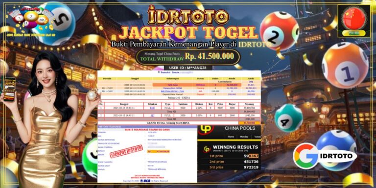 IDRTOTO JACKPOT PERMAINAN TOGEL CHINA POOLS Rp.41.500.000 – LUNAS