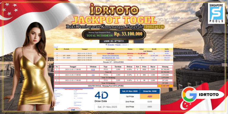 IDRTOTO JACKPOT PERMAINAN TOGEL SINGAPORE POOLS Rp.33.100.000 – LUNAS