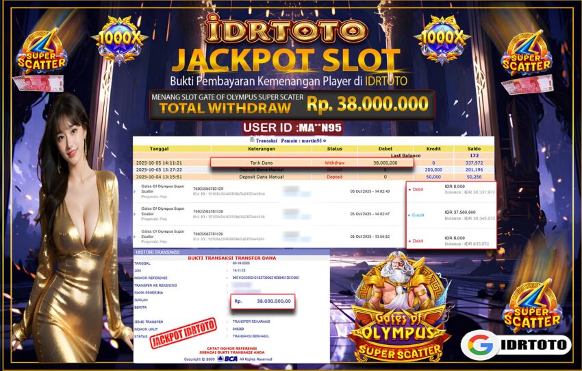 IDRTOTO BAYAR LUNAS JACKPOT PERMAINAN SLOT GATE OLYMPUS SUPER SCATTER Rp38.000.000 – LUNAS