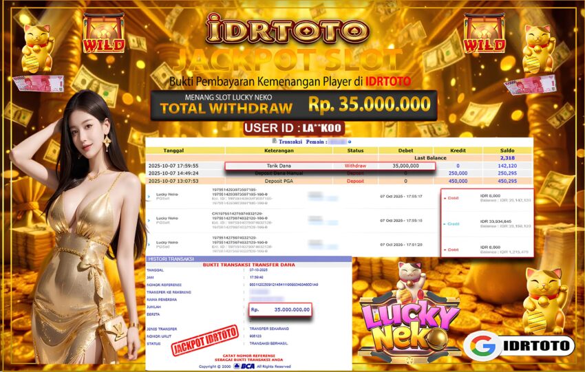 IDRTOTO BAYAR LUNAS JACKPOT PERMAINAN SLOT LUCKY NEKO Rp35.000.000 – LUNAS