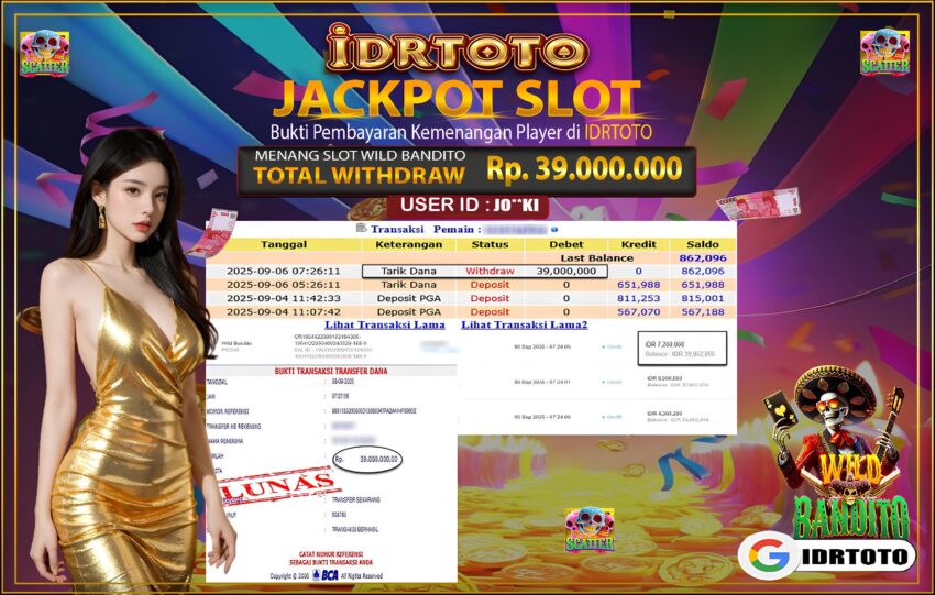 IDRTOTO BAYAR LUNAS JACKPOT PERMAINAN SLOT WILD BANDITO Rp.39.000.,000 – LUNAS