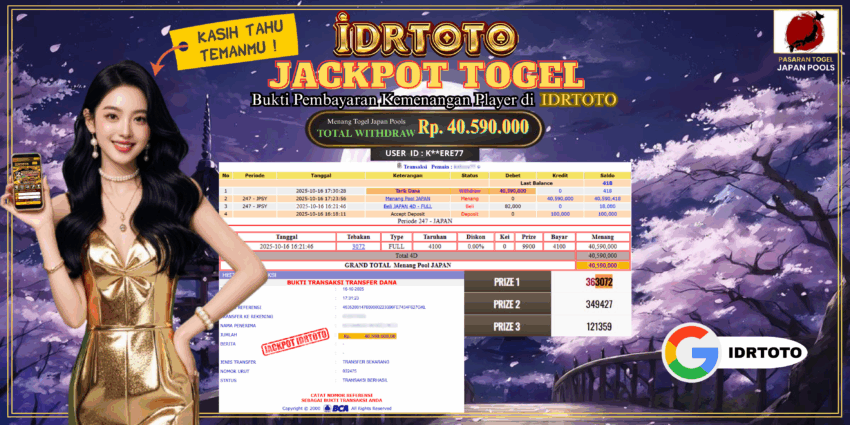 IDRTOTO BAYAR LUNAS JACKPOT PERMAINAN TOGEL JAPAN POOLS Rp.40.590.000 – LUNAS