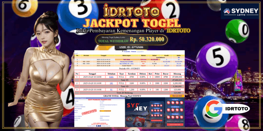 IDRTOTO JACKPOT PERMAINAN TOGEL SYDNEY LOTTO Rp.50.320.000 – LUNAS