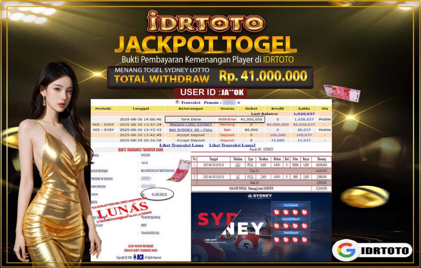 IDRTOTO BAYAR LUNAS TOGEL SYDNEY LOTTO Rp.41.000.000 – LUNAS
