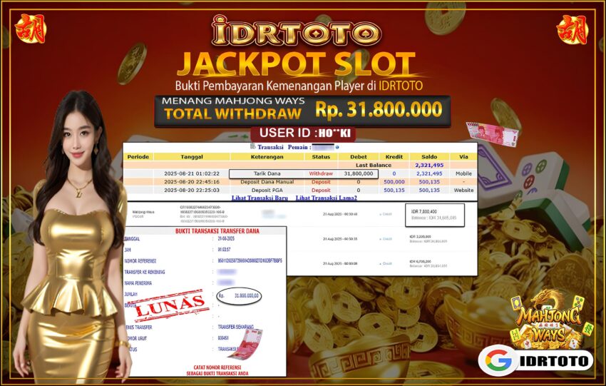IDRTOTO BAYAR LUNAS SLOT MAHJONG WAYS 1 Rp.31.800.,000 – LUNAS